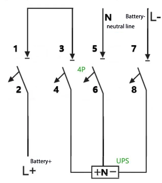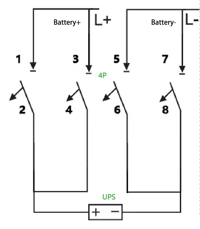 UPS elikatze-sistemen konfigurazioan, DC etengailuak funtzio bikoitzak betetzen dituzte bateriaren zirkuituen isolamendu eta gainkorronte babesteko. UPS elikadura mota desberdinak bateriaren tentsio eta korronte baloratu ezberdinei dagozkie, beraz, polo kopuru desberdineko DC etengailuak egokitzea eskatzen da. Artikulu honek UPS sistemetan aplikatzen diren 1P/2P/3P/4P DC etengailuen kableatu-metodo desberdinak zehaztuko ditu.